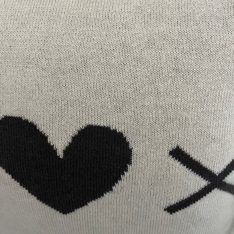 • This knitted French grey and ivory cushion is decorated with hearts and kisses and will make a lovely gift to a friend or loved one!