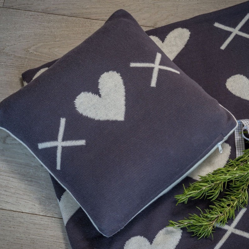 This Hearts and X Charcoal Cushion is a lovely stylish and unique knitted cushion!